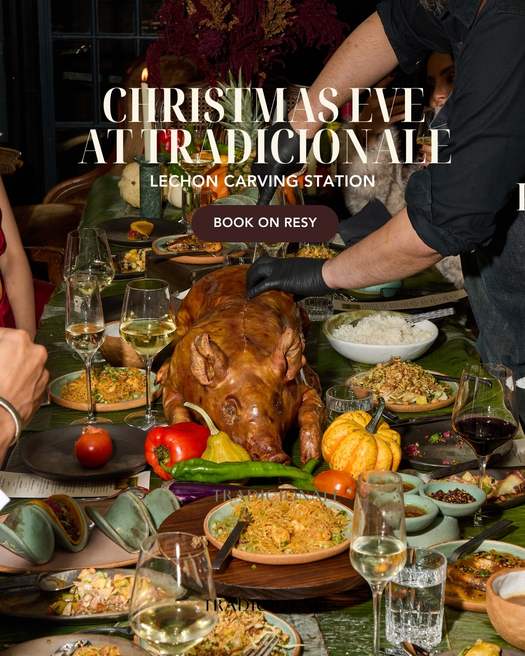 Celebrate the Tradicionale way with our special lechon carving station. The full menu will be available. Reserve your table on Resy.