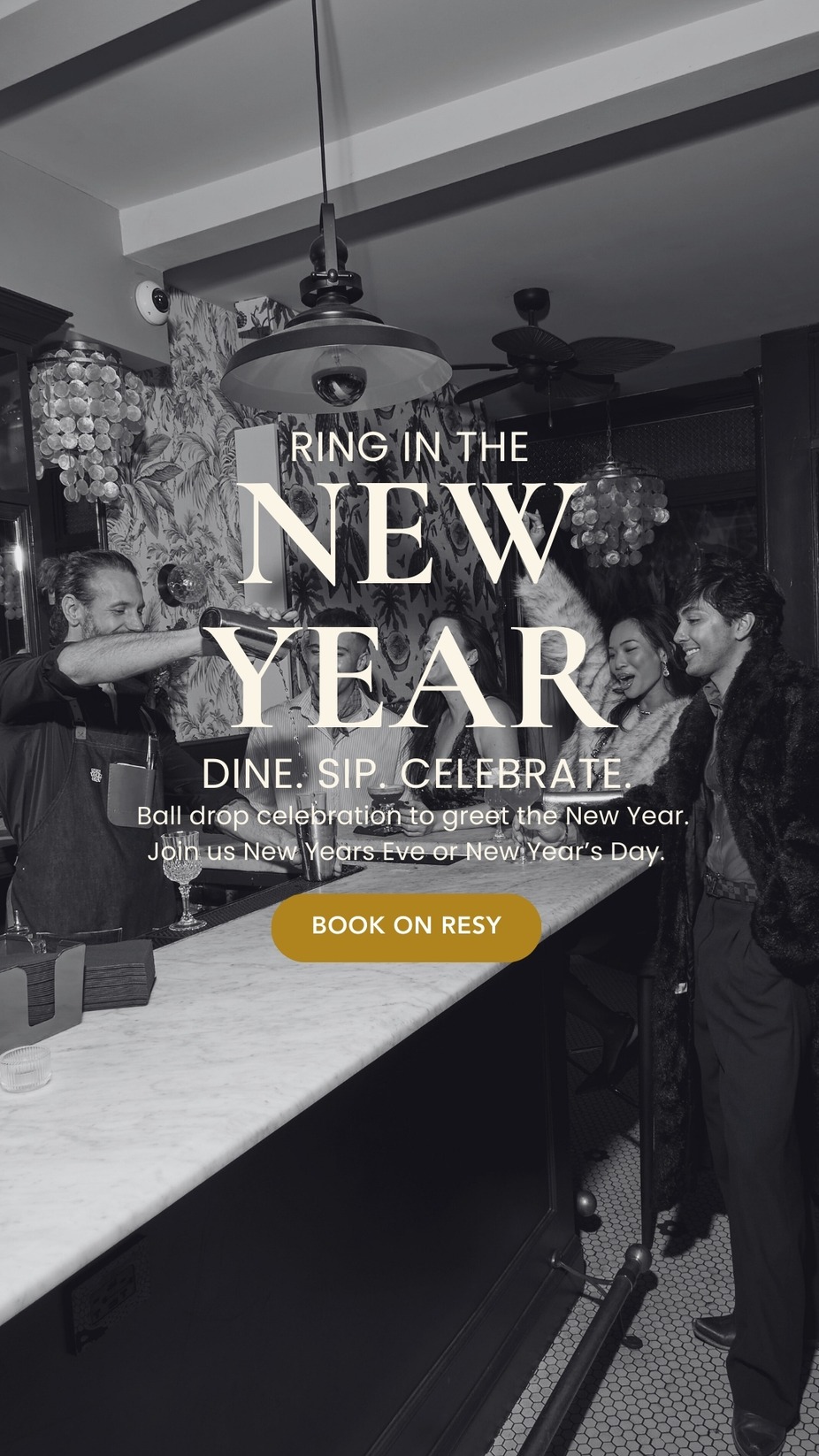 Champagne and ball drop celebration on New Year's Eve. We will also be open for New Year's Day. Join us and book your celebration on Resy.